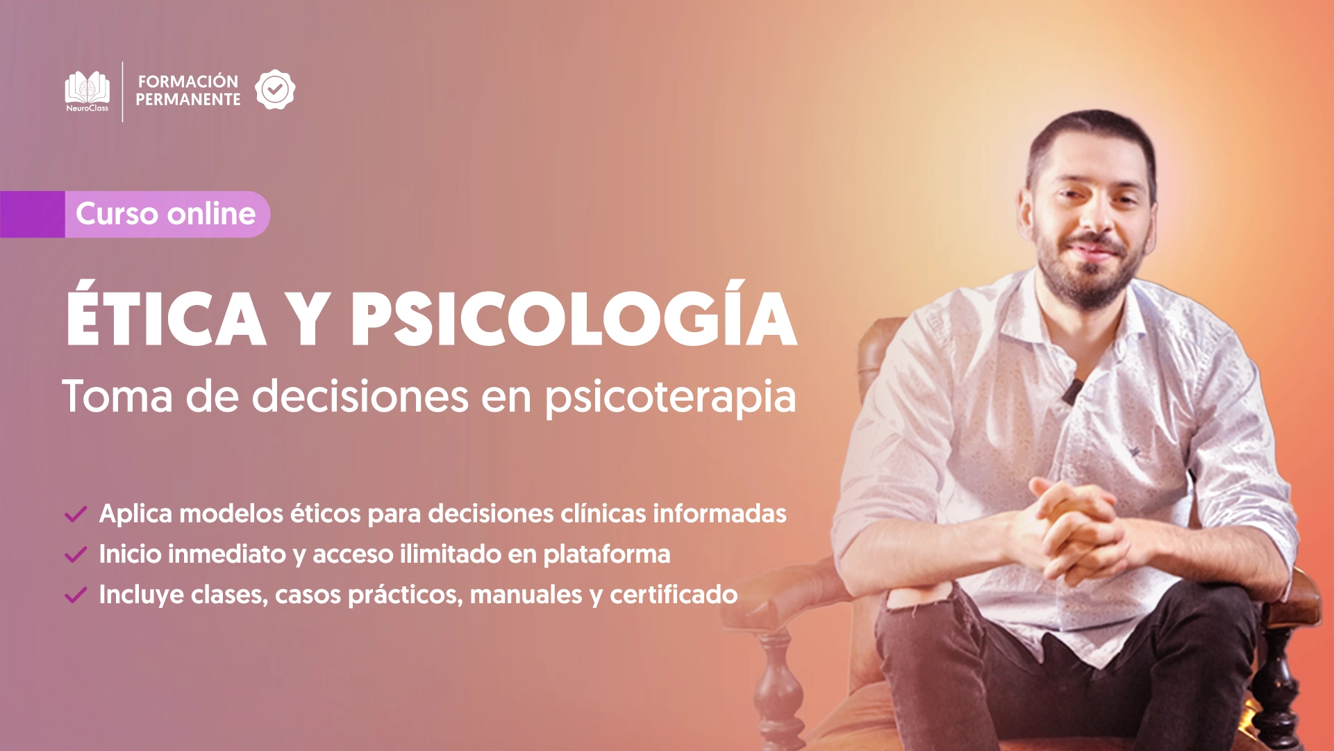 - Además, el curso incluye una introducción al Modelo de Tres Niveles, un protocolo estructurado que facilita la toma de decisiones éticas en contextos terapéuticos, ayudándote a gestionar dilemas profesionales con mayor confianza y precisión.