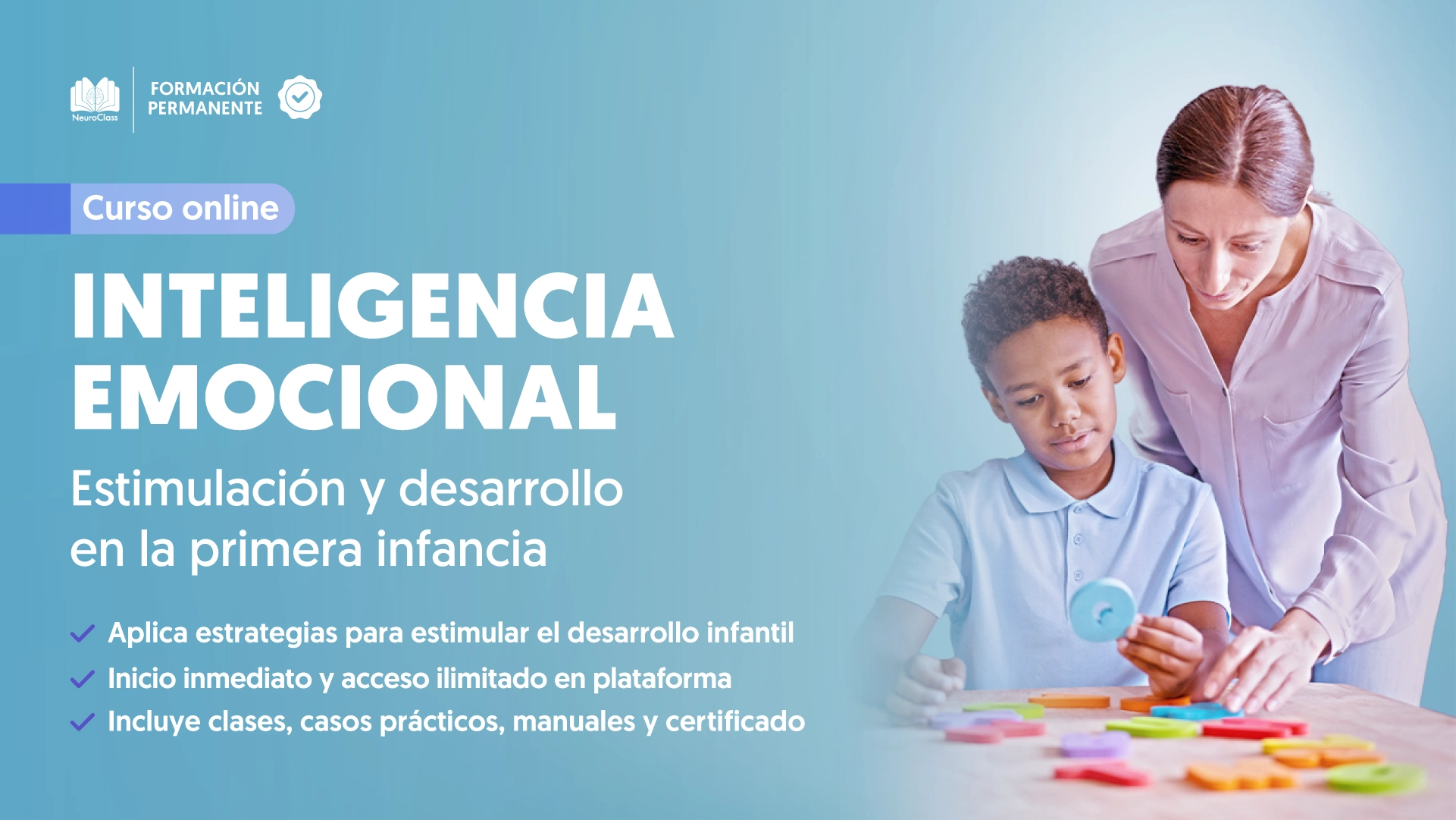 - Este curso está dirigido a estudiantes y profesionales de la psicología, educación, así como a familiares y cuidadores que buscan herramientas para fomentar el desarrollo de la inteligencia emocional en la primera infancia.