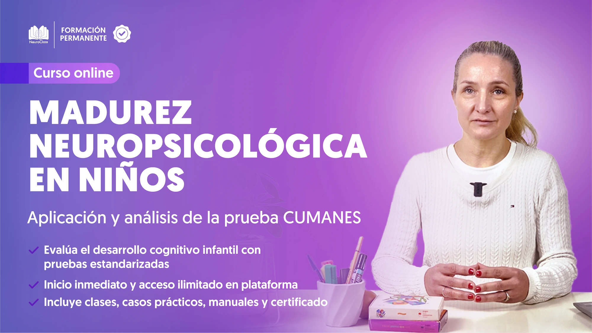 - Este curso te brindará herramientas prácticas y actualizadas para realizar evaluaciones neuropsicológicas precisas y fundamentadas, potenciando tu capacidad para apoyar el aprendizaje y desarrollo infantil.