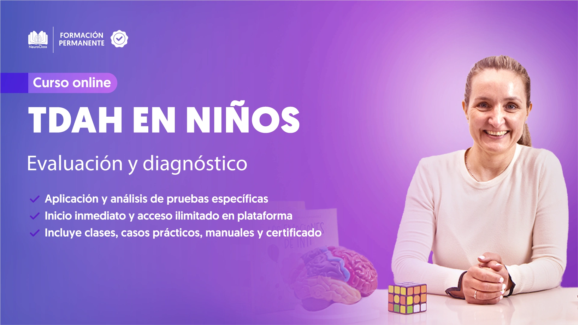 En este curso, adquirirás las competencias necesarias para diagnosticar y tratar el Trastorno por Déficit de Atención e Hiperactividad (TDAH) en niños y adolescentes.