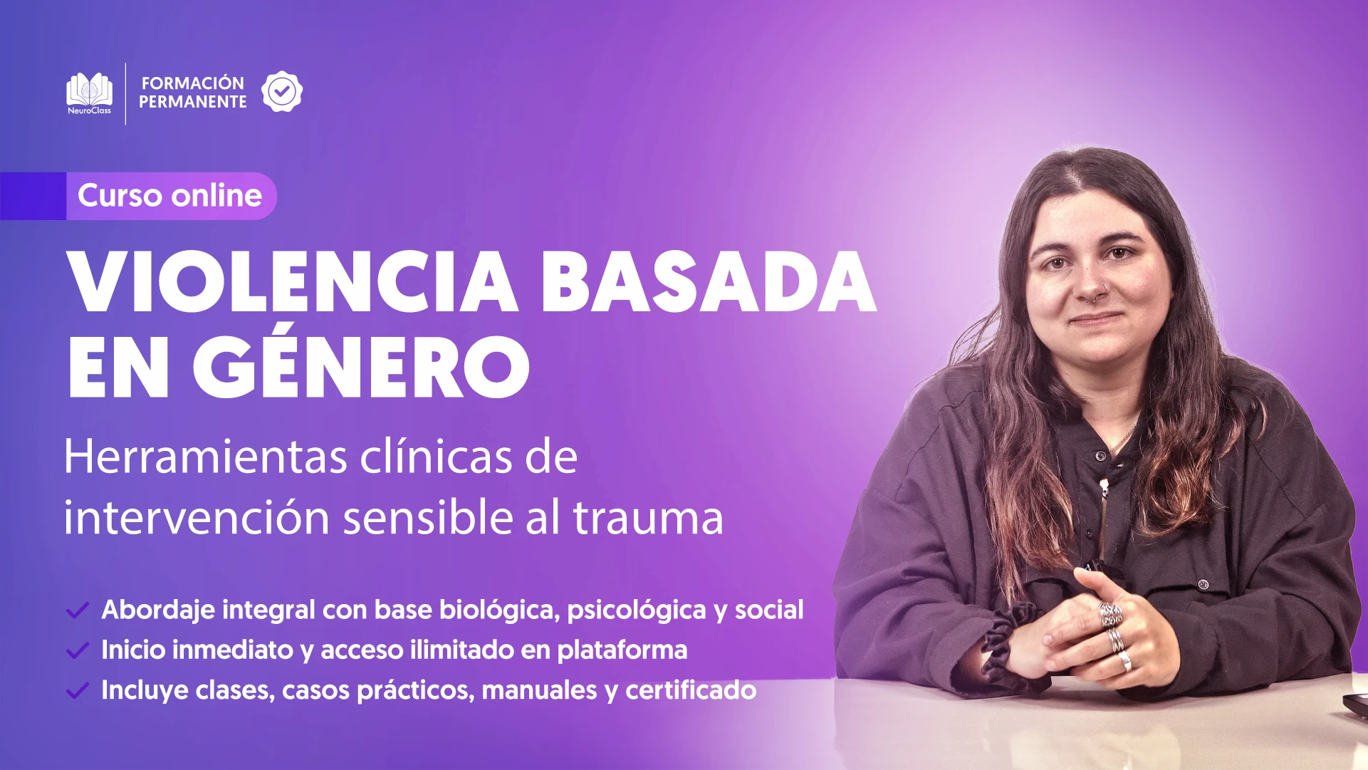 A lo largo de este curso, se exploran los fundamentos conceptuales, sociales y clínicos de la violencia basada en género y se entrenan estrategias de acompañamiento informadas en trauma, neurobiología, mindfulness y enfoques terapéuticos actualizados.